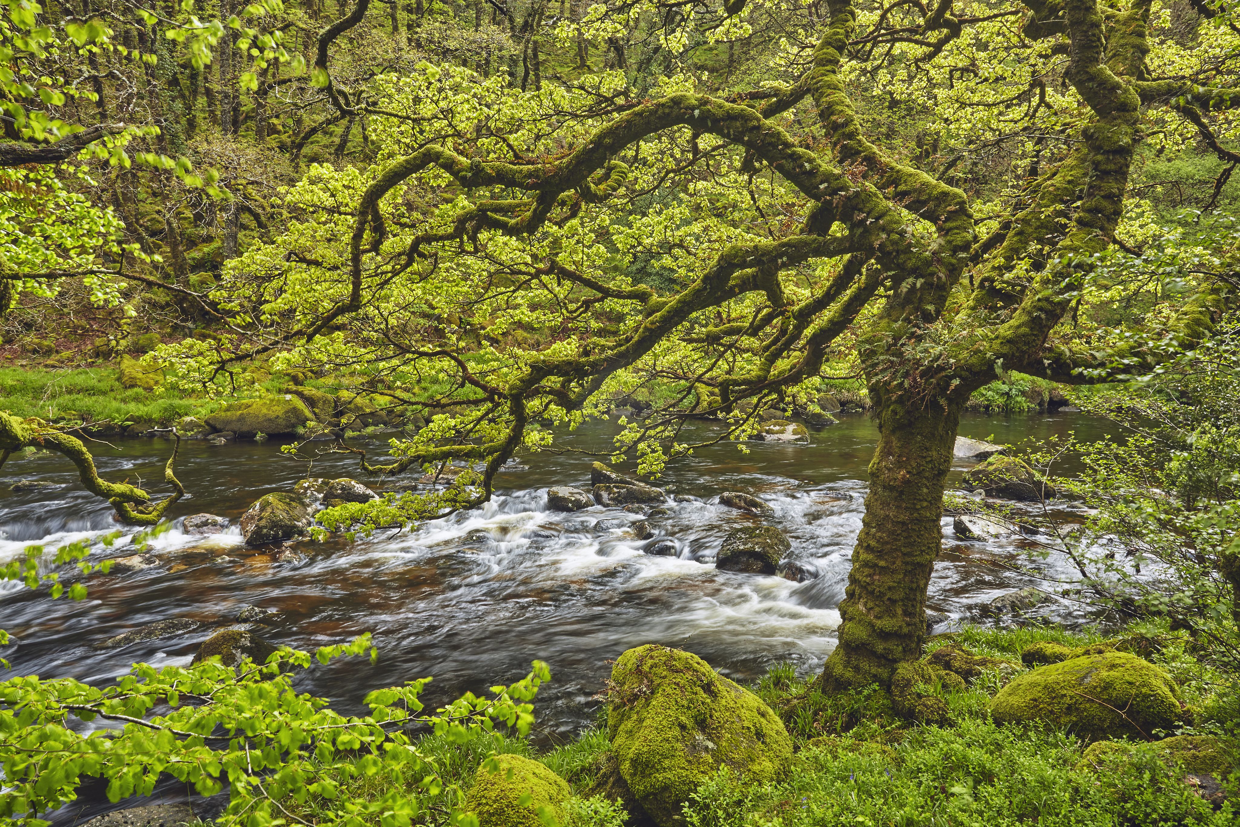 After traversing the valley and crossing the River Teign at the 17th-century stone-arch Fingle Bridge, you’ll follow a riverside path that takes you through Hannicombe Wood, Whiddon Wood and the boundary of Whiddon Deer Park on your way back to the castle.