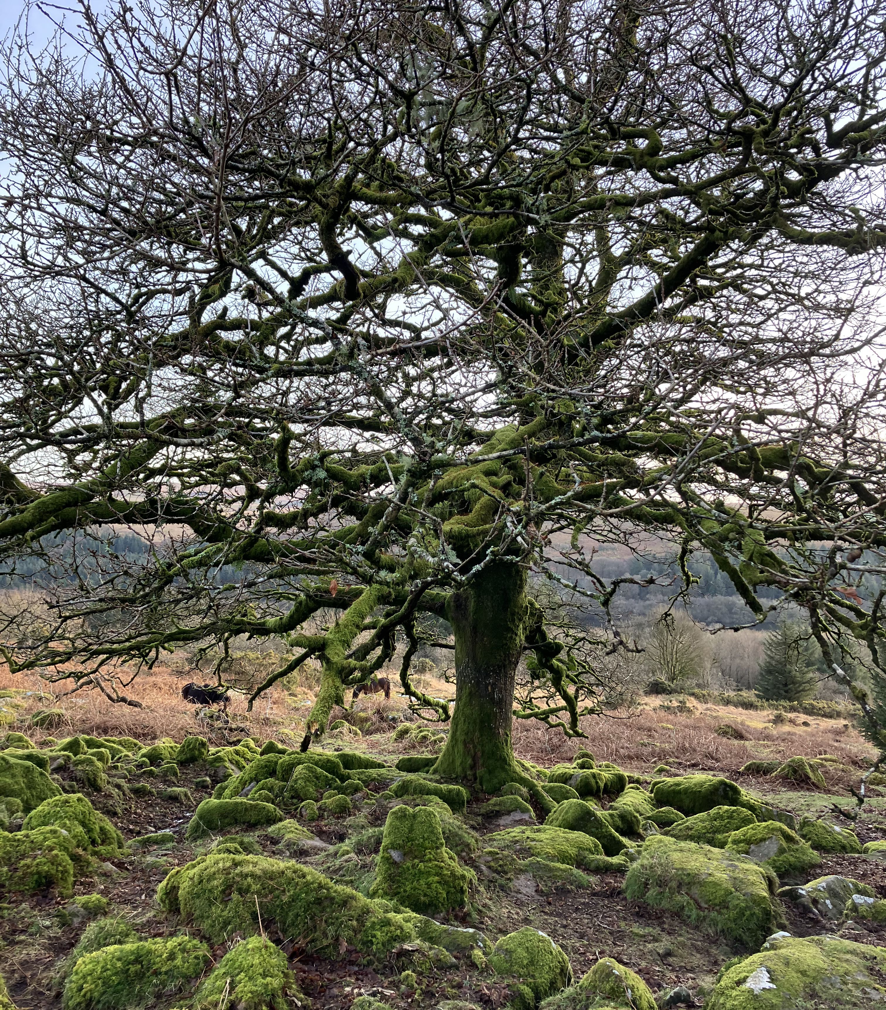 Leaving the woods, you’ll follow bridleway all the way back to Princetown via South Hessary Tor, crossing open moorland with expansive views.